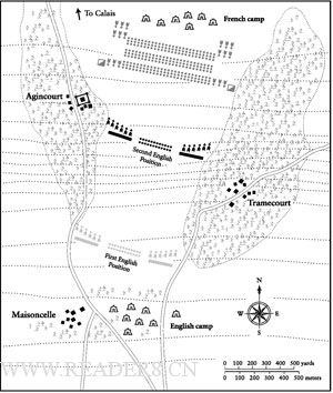 The British campaign, which started at Harfleur, ended more than two months later on 25 October at Agincourt. Harfleur: