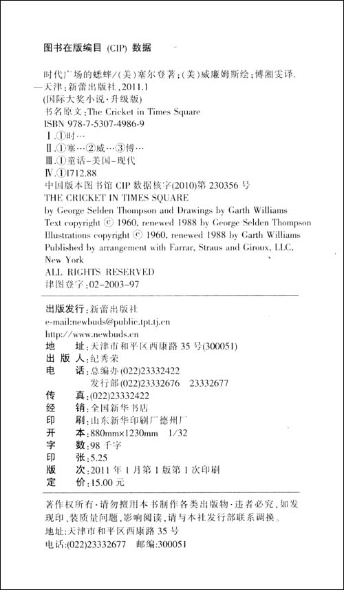 国际儿童文学:时代广场的蟋蟀(升级版) [平装] | ![]() |