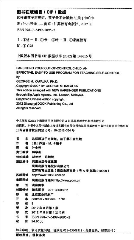 乔治?M.卡帕卡(George M. Kapalka,PH.D.),国际著名育儿专家,执业临床心理学家,美国心理学会资深会员,美国新泽西州布里克市“行为矫正中心”主任,蒙茅斯大学心理咨询专业副教授。