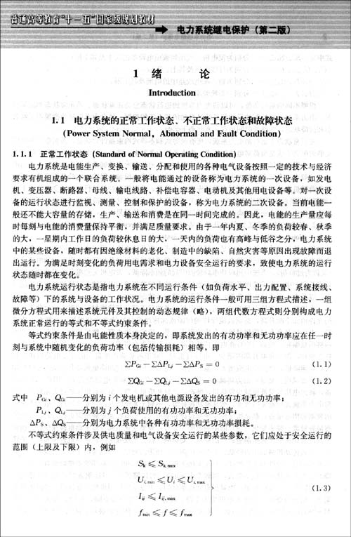 (2)原理和技术的现代化:随着数字和通信技术的发展,过去曾经广泛使用的电磁型、整流型保护很多已被数字式保护所取代,纵联保护由电力线载波通信已发展到数字光纤通信,主要介绍当前还在使用的继电保护实现技术及其发展变化,教材中的原理框图多以功能框图表述,不局限于某种实现手段。技术手段变化的同时又促进了新原理的发展,一些已经应用的保护新原理也部分地做了介绍。