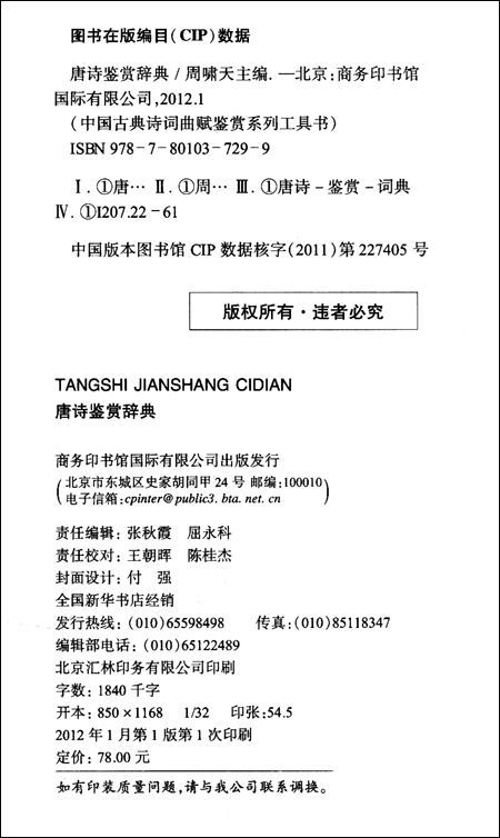 《唐诗鉴赏辞典》是中国古典诗词曲赋鉴赏系列工具书之一。