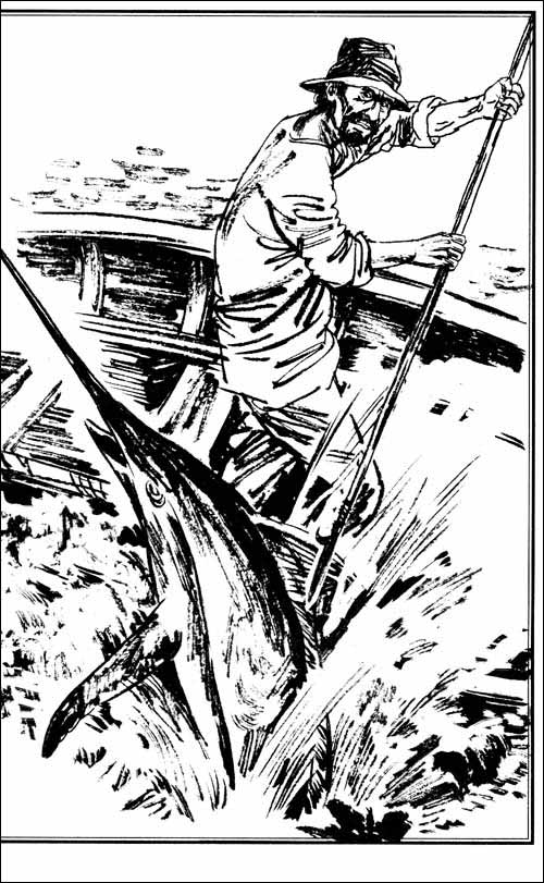 “我如今已经做了我能做到的一切事了。”老人吃完飞鱼后想,“让这鱼打起转来吧!让我们开始交锋吧!”