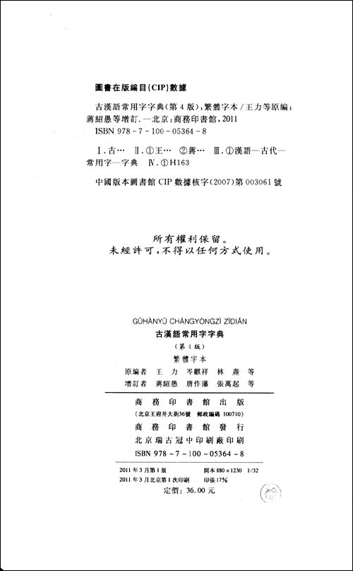《古汉语常用字字典(第4版)(繁体字本)》是由著名语言学家王力、岑麒祥、林焘等十余位专家学者编写的,是学习古汉语的必备工具书。在第3版的基础上增补修订,收古汉语常用字和复音词约一万条。释文权威,发音准确,例句精典,难懂例句附有注解和串说。专设“注意”、“辨析”内容。对疑难字词加以提示和辨析。附录有《中国历代纪元表》、《古代汉语语法简介》、《怎样学习古代汉语》等,可供读者学习参考。