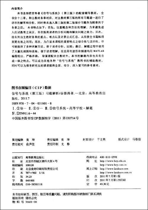 《信号与系统:习题解析(第3版)》是由高等教育出版社出版的。