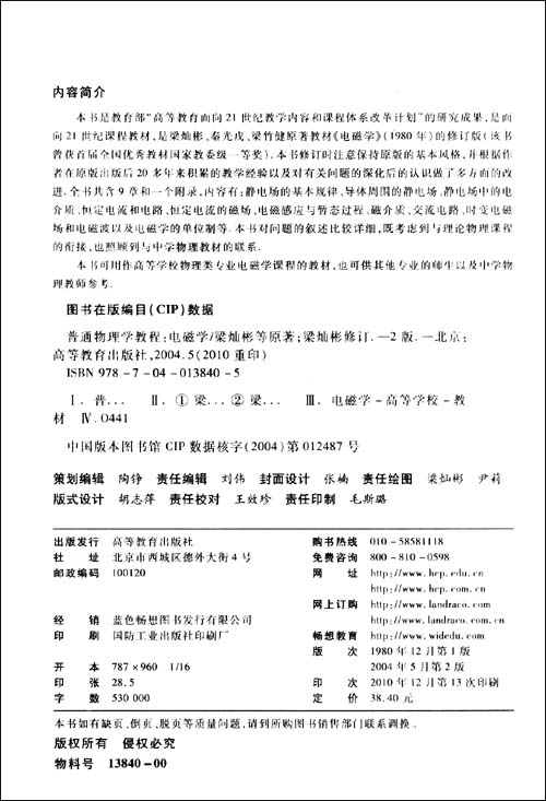 《普通物理学教材:电磁学(第2版)》是面向21世纪课程教材?普通物理学教程之一。