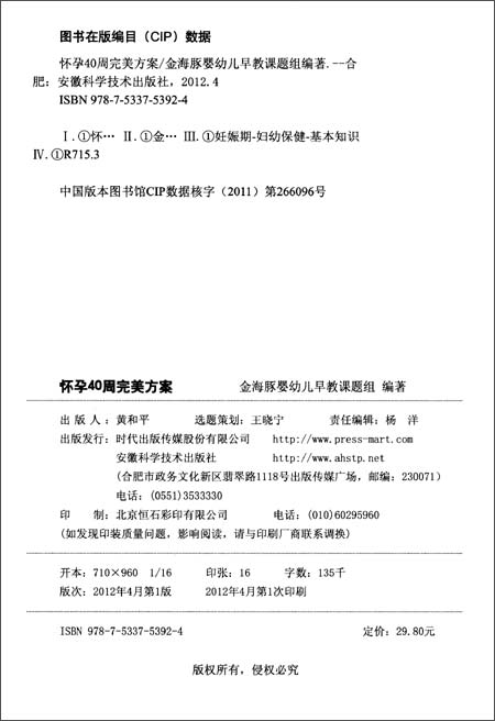 《怀孕40周完美方案》配有大量的插图,内容丰富、通俗易懂、形象生动、科学实用,可以作为新婚夫妇、孕妈妈的基本读物。我们相信,在《怀孕40周完美方案》的陪伴下,每位孕妈妈都能顺利地迎接聪明、健康的宝宝到来。