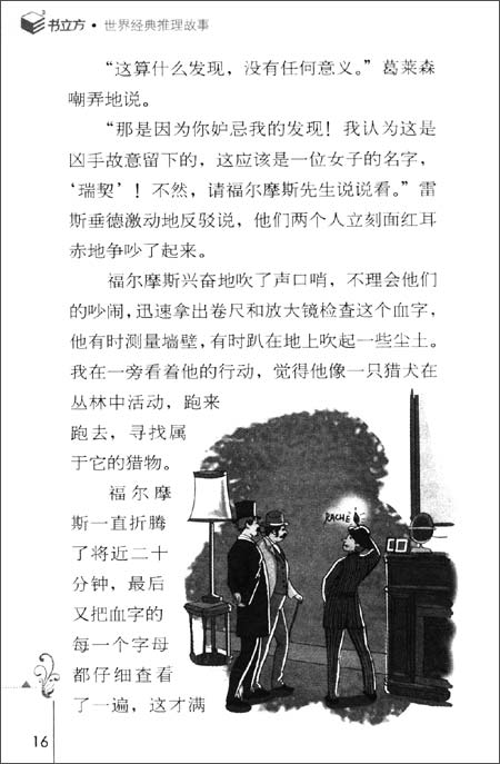 “这就没问题了。我愿意和一个好学又沉静的人住在一起。”于是,在我的坚持下,小斯坦弗带我去找福尔摩斯。