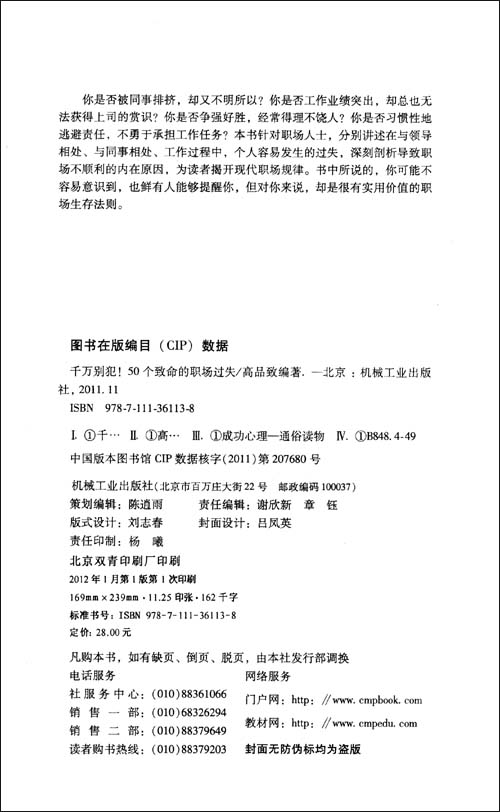 千万别犯!50个致命的职场过失(高品致著) | ![]() |