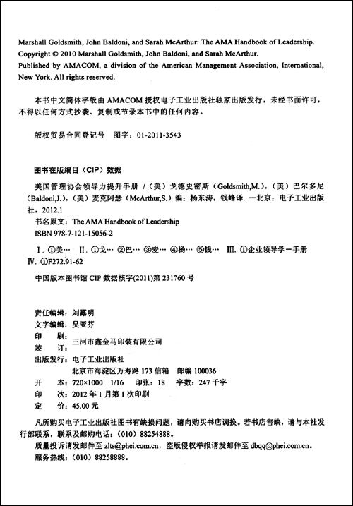 译者:杨东涛 钱峰 编者:(美国)马歇尔?戈德史密斯 (Marshall Goldsmith) (美国)约翰?巴尔多尼 (John Baldoni) (美国)莎拉?麦克阿瑟 (Sarah McArthur)