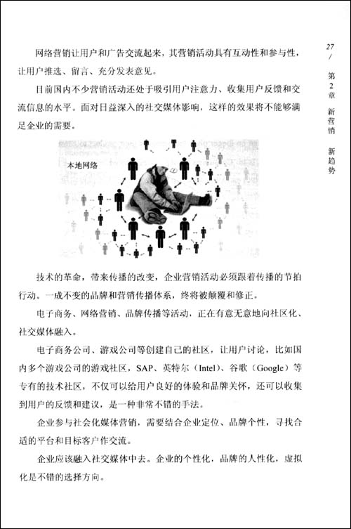 Social Network不仅仅是SNS,而且是互联网母体未来的主形态,更是互动营销未来不可旁置的核心网络;所以,对于 Social Network及其Media传播与营销特性的认知、实践,就成了营销领域的下一步,以及最重要的那个The Big Thing;以人为中心、以关系为基础的网络,互动、分享、口碑、营销、广告、电子商务等尽在其中;唐兴通的《社会化媒体营销大趋势——策略与方法》非常有助于我们把握浮现中的未来!