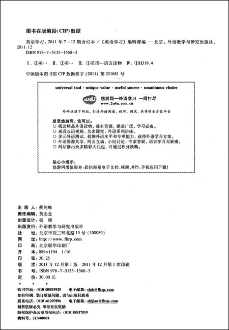 喜欢英语学习合订本(2011年7-12期)(2012年1月) [平装]请与您的朋友分享,由于版权原因,读书人网不提供图书下载服务