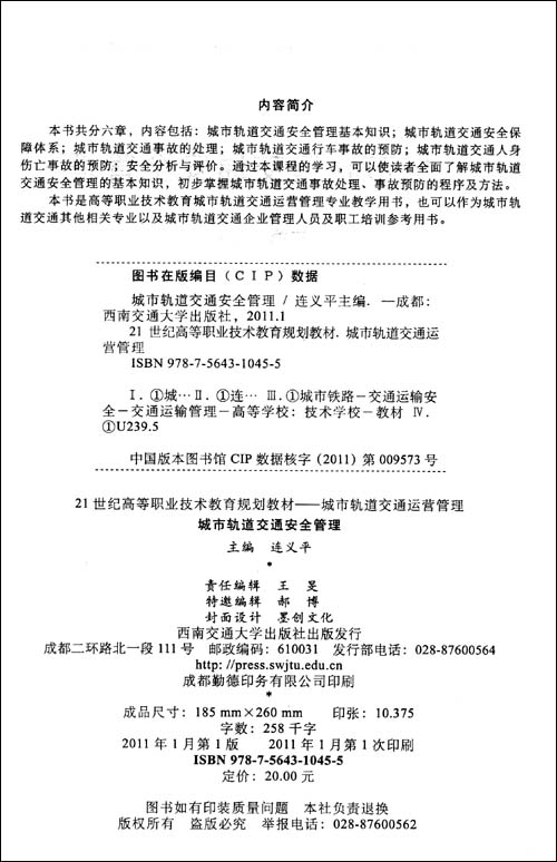 《城市轨道交通安全管理》是21世纪高等职业技术教育规划教材·城市轨道交通运营管理。