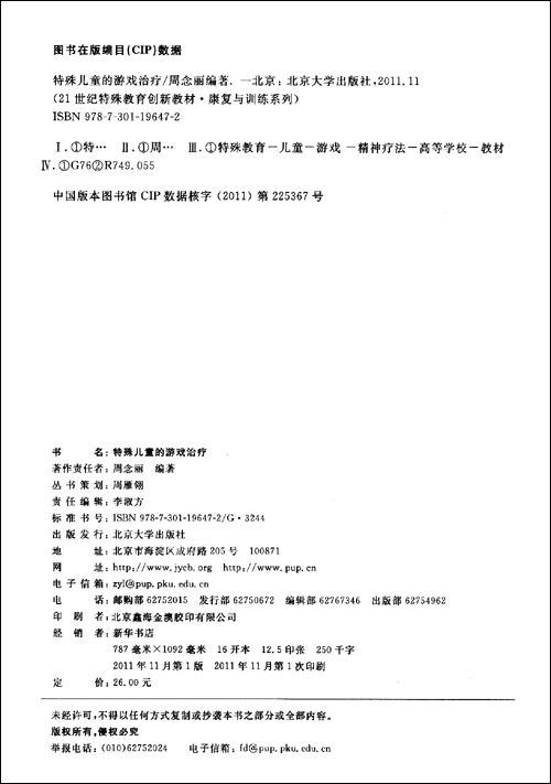 《特殊儿童的游戏治疗》是21世纪特殊教育创新教材·康复与训练系列之一。