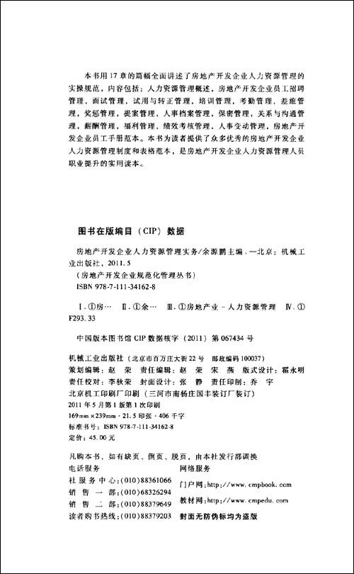 同时,《房地产开发企业人力资源管理实务》也可作为房地产经营管理专业和人力资源专业师生的优秀参考教材。