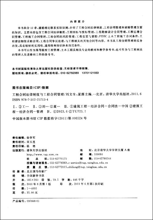 《工程合同法律制度与工程合同管理》由清华大学出版社出版。