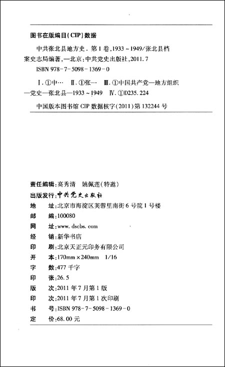 《中共张北县地方史(1933-1949)(第1卷)》由中共党史出版社出版。