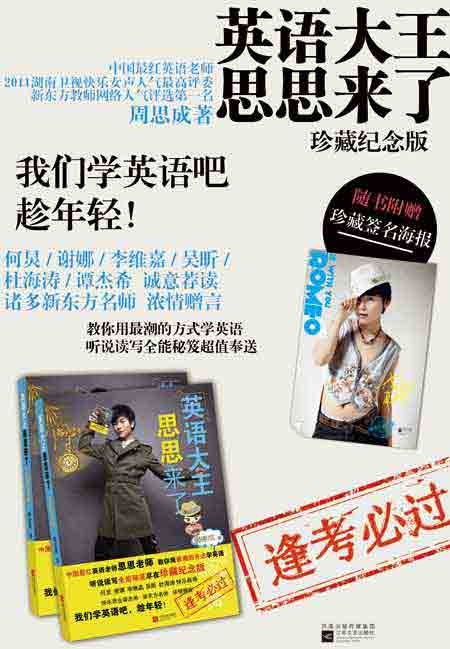 《英语大王思思来了(珍藏纪念版)》是个性最张扬又最勤奋、虽受争议却被万千学生喜爱的长沙新东方思思老师,用其在新东方六年教授了十余万学子的教学经验总结出的关于英语学习和人生奋斗的宝典。它囊括了思思老师对高考、四六级、考研、雅思、托福、GRE等听说读写的全方位解读,甚至包括克服英语难关所需要的心态。思思老师认为,授人以“欲”是比知识本身更重要的东西。全书包括上篇、中篇、下篇、附录一、附录二。上篇“思思大王养成记”。思思老师与读者们分享了他“不完美也要精彩”的人生经历,他的人生本身就是由一连串精彩的励志故事组成。中篇“思思大王英语经”重点展示了思思老师独特的英语学习方法——“快乐英语学习”。无论是背单词,练听力,还是做阅读,学口语,都有实用又有趣的学习秘诀。下篇“思思大王考试决”是思思老师独家逢考必读、逢考必过的独家秘籍。思思老师如何面对受到争议的快女评委身份、如何回应彪悍人生不需要怀疑的老罗对他以及在新东方课堂跳过舞的老师们的批判、如何看待自己的时尚风格,又如何将时尚与英语学习结合,精彩内容尽在附录一的“对话思思老师”。附录二“他们说”中有快乐男生谭杰希的俏皮感言,还有新东方名师范超、孔玮、刘畅、陈仲凯、刘云龙等人的精彩点评,更有诸多媒体、经销商,还有广大思迷们的浓情赠言。