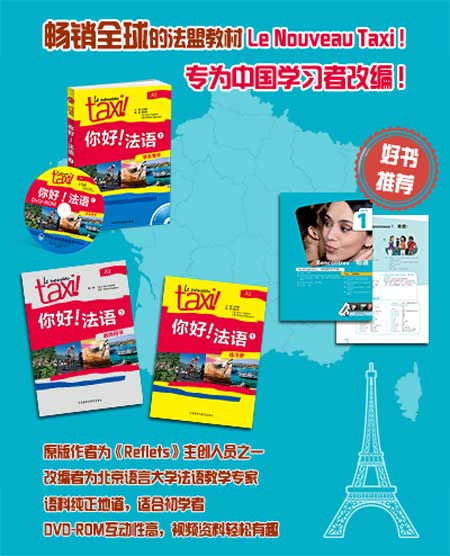 《你好!法语2(学生用书)(附光盘)》是一套针对零起点二外法语学习者的综合教程,分为A1、A2和B1三个级别,既沿用《走遍法国》“原版语料+本土化改编”相结合的外语教材编写模式,又增加数字化工具,附赠DVD-ROM光盘兼顾课内外,着眼课堂学习和课后自主训练双方面。《你好!法语2(学生用书)(附光盘)》针对“欧洲语言共同参考框架”下的A2级别,包含9个学习单元共36课的学习内容,三套DELF考试仿真模拟题,以及A1级别主题扩展词汇、语法小结等内容。《你好!法语2(学生用书)(附光盘)》在引进原版真实语料的基础上,进行了细致周到的“本土化”改编:è 语法讲解充分考虑各类考试的需求——大学法语四级、考研二外法语、TCF/TEF/DELF等,按照中国读者的接受习惯进行总结梳理,每个分册附录设置一个语法总结,将散于各课的知识点按照一个高实用性的脉络进行梳理和归纳。è 突破原版空间布局的束缚,按照教学版块之间的相关性,将与学习内容高度关联的注解、译文等设计为查阅工具,随课安置。配套DVD-ROM光盘课堂教学和自主训练双结合:è 听:课堂练习需要的全部音频(CD pour classe: Mp3)+自主训练的听力文件(DVD-Rom→Audio)。è 看:一辆神奇的出租车带你行走于巴黎的大街小巷,观看法兰西的众生百态(DVD-Rom→Vidéo)。è 练:词汇+语法+动词变位,三大类强化训练(DVD-Rom→Activités)。è 自测:参照“欧框”能力量化标准设定的评估项目,随时监测个人学习状态(DVD-Rom→Portfolio)。
