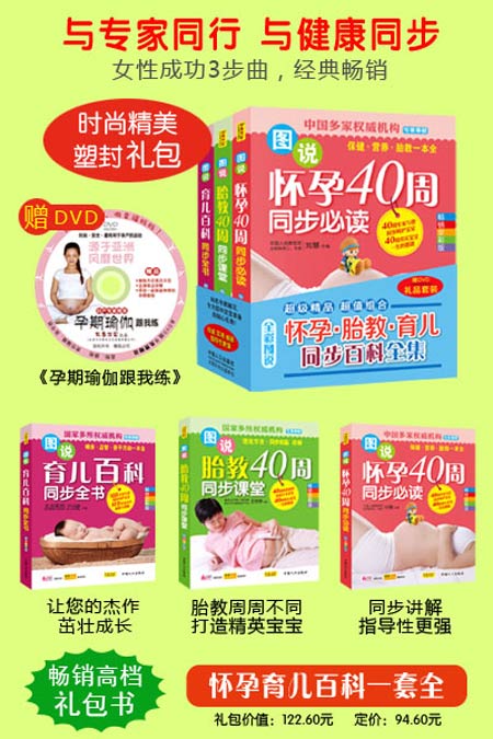 一套书三本:《图说怀孕40周同步必读(畅销全彩版)》《图说胎教40周同步课堂(畅销全彩版)》《图说育儿百科同步全书(畅销全彩版)》,并赠送 DVD光碟(孕期瑜伽跟我练) 非常赞哦!