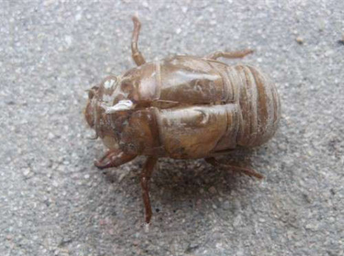 今天我在外面玩的时候,捡到了一只蝉蜕,把它带回了家。