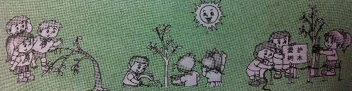 他们三个想了个办法,从近出找来了小木棍和绳子做了个小栏栅把小树围起来,还挂了个小木牌,上面写着:“爱护树木”。微风一吹,树叶欢快的抖动着好像在说:“谢谢!谢谢你们!‘红领巾’真好!”