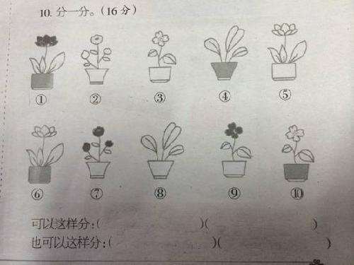 当然我们还可以按照同一类的花分成一组:(1、5、6)(2、7)(3、9、10)(4、8)。