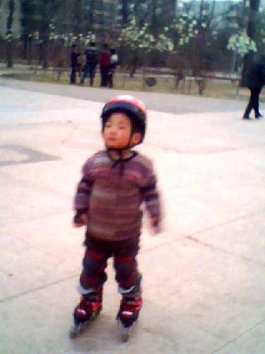 星期三下午接园后,爸爸带着乐乐去公园学轮滑。到底是又大了一岁了,乐乐跟着轮滑教练一圈一圈地在公园广场的平地上滑着,也不撒娇,也不喊累,一直坚持到下课。