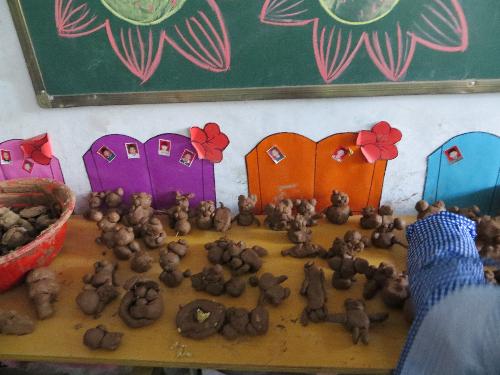 同学们还做了好多漂亮的泥塑那。你们都快来看看!