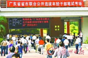昨日(9月7日,下同),来自全国各地,报考广东省市联合公选的3800多名考生,分赴广州、北京两地考场,在整整一天的笔试当中,考生们总共进行了综合素质、领导工作案例以及外语三场考试。