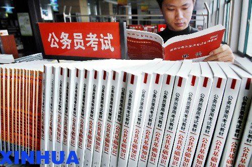 资料图片:2007年10月23日,一位考生在银川市新华书店挑选公务员考试参考书籍。 当日,国家公务员考试开始通过网络报名。今年共有139个中央机关及其直属机构和参照公务员法管理的机关单位面向社会公开招考,公共科目笔试将于2007年12月9日在全国各省会城市、自治区首府、直辖市和个别较大的城市同时举行。新华社记者李紫恒摄