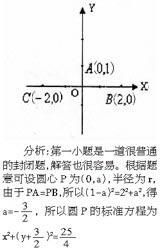 例1:(1)已知圆P经过平面直角坐标系中三点A(0,1),B(2,0),C(-2,0),求圆P的标准方程。