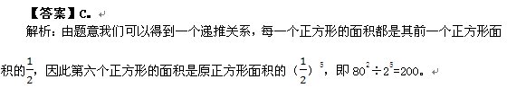 一个边长为80厘米的正方形,依次连接四边中点得到第二个正方形,这样继续下去可得到第三个、第四个、第五个、第六个正方形,问第六个正方形的面积是多少平方厘米?