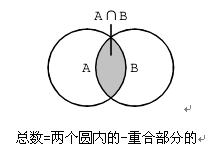 如果被计数的事物有A、B两类,那么,先把A、B两个集合的元素个数相加,发现既是A类又是B类的部分重复计算了一次,所以要减去。如图所示。