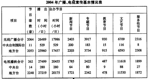1.2004年,所有无线广播自办节目中,新闻节目和专题节目所占比例分别为( )。