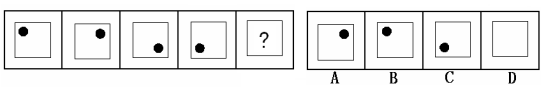 (答案:B。黑点在正方形中顺时针移动。在第5个图形中,应该正好移动到左上角。)