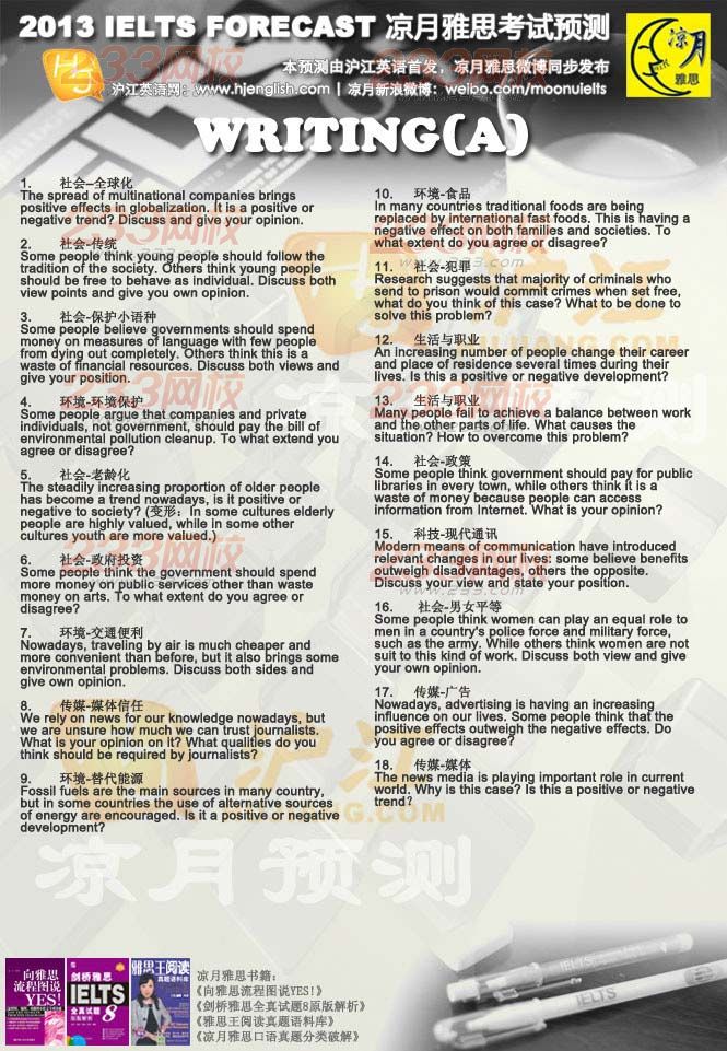 A类大作文主要关注:科技发展给人们带来的影响、生态环境类(能源或交通)、社会类(尤其关注政策类和老龄化)以及职业发展。具体可参考预测的题目。