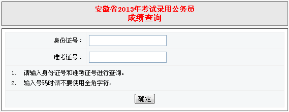 安徽2013年公务员笔试成绩查询入口 点击进入