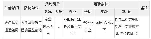关于四川合江县交通工程质量监督站事业单位招聘公告关于合江县交通工程质量监督站直接考核招聘事业单位工作