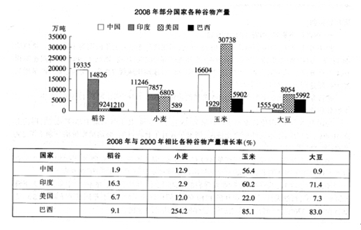 1.下列四种谷物中,2008年与2000年相比全世界增产量最多的是: