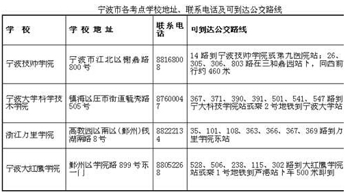 本次考试宁波设了宁波技师学院(99个试场)、宁波大红鹰学院(70个试场)、浙江万里学院(99个试场)、宁波大学科技学院(99个试场)4个分考点,共367个试场。