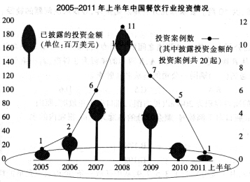 1.2005—2011年上半年,中国餐饮行业的投资案例共有( )。