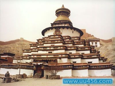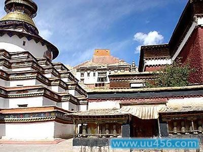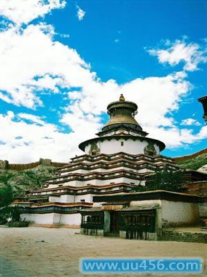 白居寺是汉语名称,藏语简称“班廓德庆”,意为“吉祥轮大乐寺”,位于江孜县城东北隅,拉萨南约230千米处,距日喀则东约100多千米,海拔3900米。