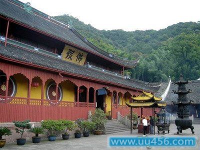 天童寺位于宁波市东25公里的太白山麓,号称"东南佛国",为我国"五大丛林"之一。始建于西晋永康元年(300年)。它从义兴结庐至今近1700年,几度兴毁。其中明万历十五年(1587年),一次特大山洪几乎使天童寺荡然无存。一直到崇祯四年(1631年),密云禅师主持修建,经10年,建筑面积约4万5千平方公尺,建成殿屋999间,规模宏伟,建筑华丽,佛像高大,为国内罕见。