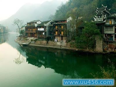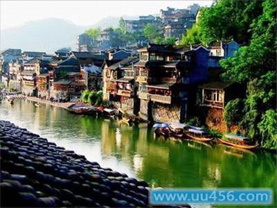 凰山城依偎着沱江,群山环抱,关隘雄奇。这里的山不高而秀丽,水不深而澄清,峰岭相摩、河溪萦回,碧绿的江水从古老的城墙下蜿蜒而过,翠绿的南华山麓倒映江心。江中渔舟游船数点,山间暮鼓晨钟兼鸣,河畔上的吊脚楼轻烟袅袅,可谓天人合一。