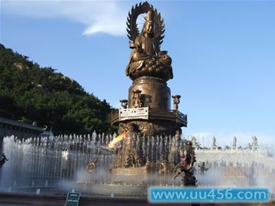 极乐菩萨界:极乐菩萨界位于法华院西侧,集雕塑、音乐、喷泉、瀑布、焰火于一体,是运用现代的高科技手段,生动演绎古老佛教文化的动态音乐喷泉广场。其设计之新颖,规模之庞大,效果之独特,意境之殊胜,实属世间独一无二,非佛之宝地难得一见。能亲瞻礼拜,皆缘深福重,可得心想事成,吉祥如意,安康太平之万千福报。
