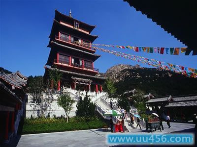 国家AAAA级旅游景区---石岛赤山风景名胜区,地处山东半岛最东端、荣获首届国家魅力城市的荣成市石岛管理区渔港西北,方圆12.8平方公里,东、南两面连海,西、北两面接陆,东隔黄海与韩国遥遥相望,直线距离仅94海里。赤山因石红而得名,海拔370米,早在春秋时期就以雄峙黄海之滨,踞守石岛要港,沟通韩日南亚,商贾云集汇聚而成为我国北方名山。隋唐建有天门院、竹林寺、红尼庵等寺院。唐穆宗四年(公元八二四年),韩民族英雄、海上贸易家张保皋在此建“赤山法华院”,后日本高僧圆仁法师曾三赴赤山,客居此院两年九个月,著写的被誉为东方三大旅行记之一的《入唐求法巡礼行记》(日本圆仁所写的《入唐求法巡礼行记》和唐代玄奘写的《大唐西域记》、元朝意大利人马可•波罗写的《马可•波罗行记》被人们称誉为“东方三大旅行记”),遂使此地成为佛教胜地和中韩日三国人民友好往来的历史见证地。