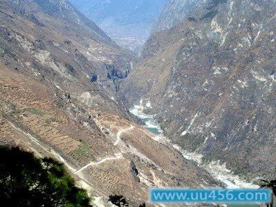 虎跳峡距离丽江纳西族自治县县城60公里,这条峡谷在金沙江上游,全长18公里,分上虎跳、中虎跳、下虎跳三段,迂迥道路25公里,东面为玉龙雪山,西面为迪庆的哈巴雪山,峡谷垂直高差3790米,是世界上最深的峡谷之一。江流最窄处,仅约30余米,相传猛虎下山,在江中的礁石上稍一脚,便可腾空越过,故称虎跳峡。峡内礁石林立,有险滩21处,高达10来米的跌坎7处,瀑布10条。