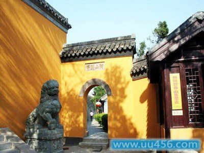 观音山位于蜀冈东,在唐朝扬州城的西南角,现在成为从唐朝遗址出士文物的保管地。从观音山的山门走出,自东侧绕到後面,这里就是唐城遣址。映入眼帘的是一望无际的茶园,在唐代的繁华情景已经看不到了。当了解到南北走向的土堤是过去的城壁时,引发起我们对历史无情的感慨。在观音山东侧,有以黑砖重建天皇门及城壁後恢复原貌的成象苑,陈列着唐代的遗物。