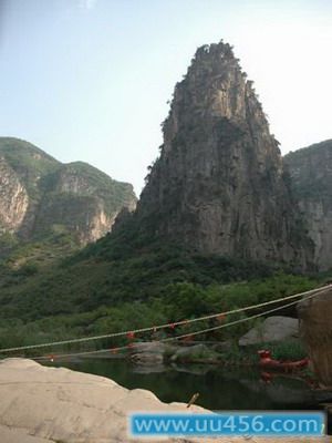 太行山大峡谷的山势千奇百怪各不相同,有悠闲品茗,切磋棋艺的仙人对弈;有镇守着自己领地的凛凛雄狮,有“超然云雾中,不与群山伍”的照壁峰,有沐浴朝阳的金鸡报晓,各个超然出众。有两座造型奇特的山被当地人称做纸(指)山,后面稍远的好象一张薄薄的纸,前面的又象一根手指头,所以都被叫做纸(指)山,但却代表着不同的造型。