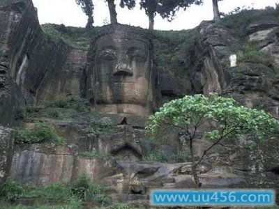 牛角寨的东侧岩壁,依山造 有一尊大佛,半身坐像,坐西向乐,双手齐胸合十,坐高15.85米,宽11米,面形丰富,眉似弯月,双目微睁,平视东方,嘴角微向上翘,发成螺髻,神态安祥,线条流畅,是修造乐山大佛的蓝本,系唐代作品。山下怪石四壁间有40龛造像、5龛文字,神龛场面宽阔状观,布局合理,雕刻精湛,造形生动,栩栩如生。牛角寨后山顶造玉皇大帝像一尊,系清代作品。在其东北面山坡上,大小六个巨石上有唐代摩崖造像55龛385尊,多为道教造像,大都完好,且半圆雕居多,刀法简练,明快。